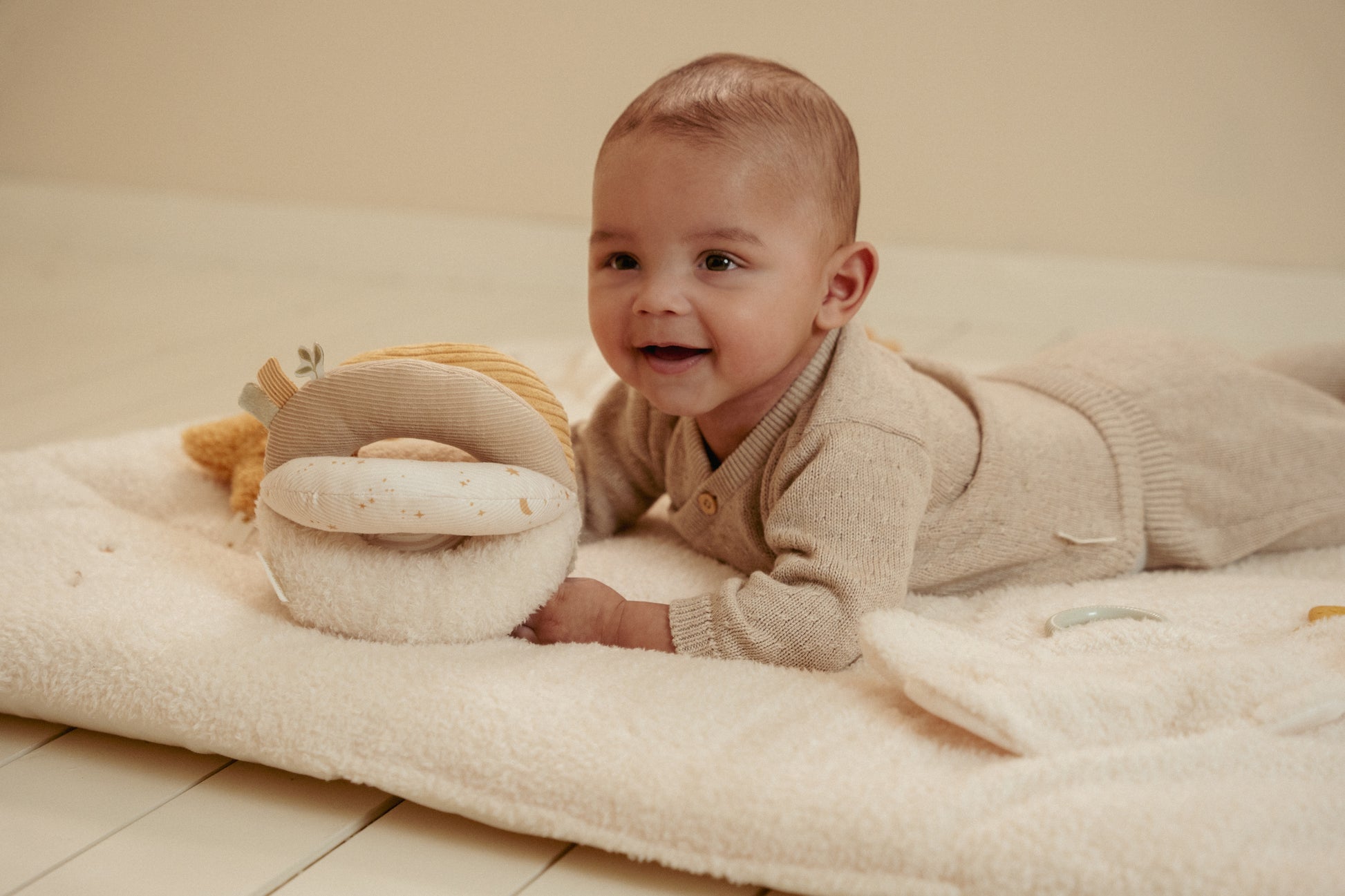 La balle d'éveil Newborn Naturals est spécialement conçue pour les bébés curieux qui veulent découvrir le monde. Le tissu doux, les couleurs subtiles et la forme ludique la rendent facile à attraper, à faire rouler et à explorer. Cela stimule le développement moteur et offre un plaisir de jeu sans fin. Les différentes textures invitent à toucher et à saisir, parfait pour les petits doigts. Un merveilleux premier jouet à tenir, avec lequel jouer et toujours avoir à portée de main.